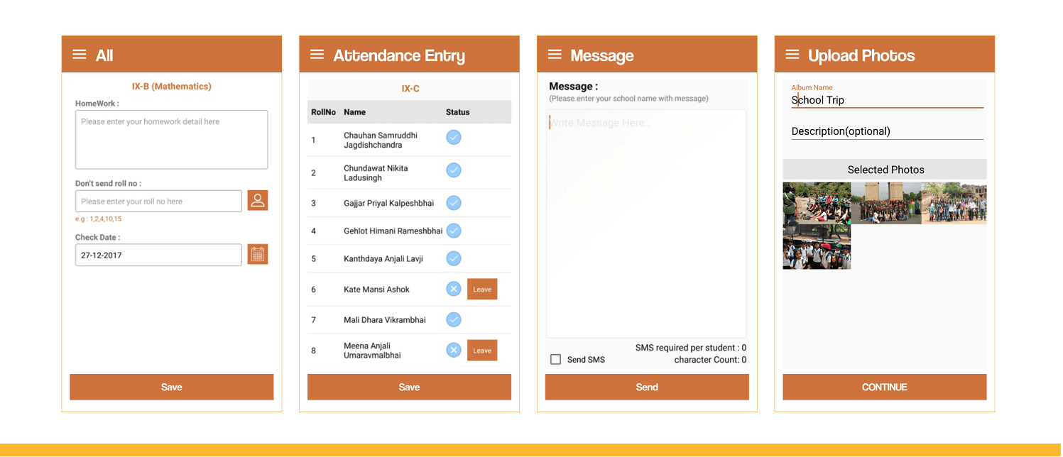A separate app for teachers for easy communication with parents for sharing of messages, photographs, homework & Attendance